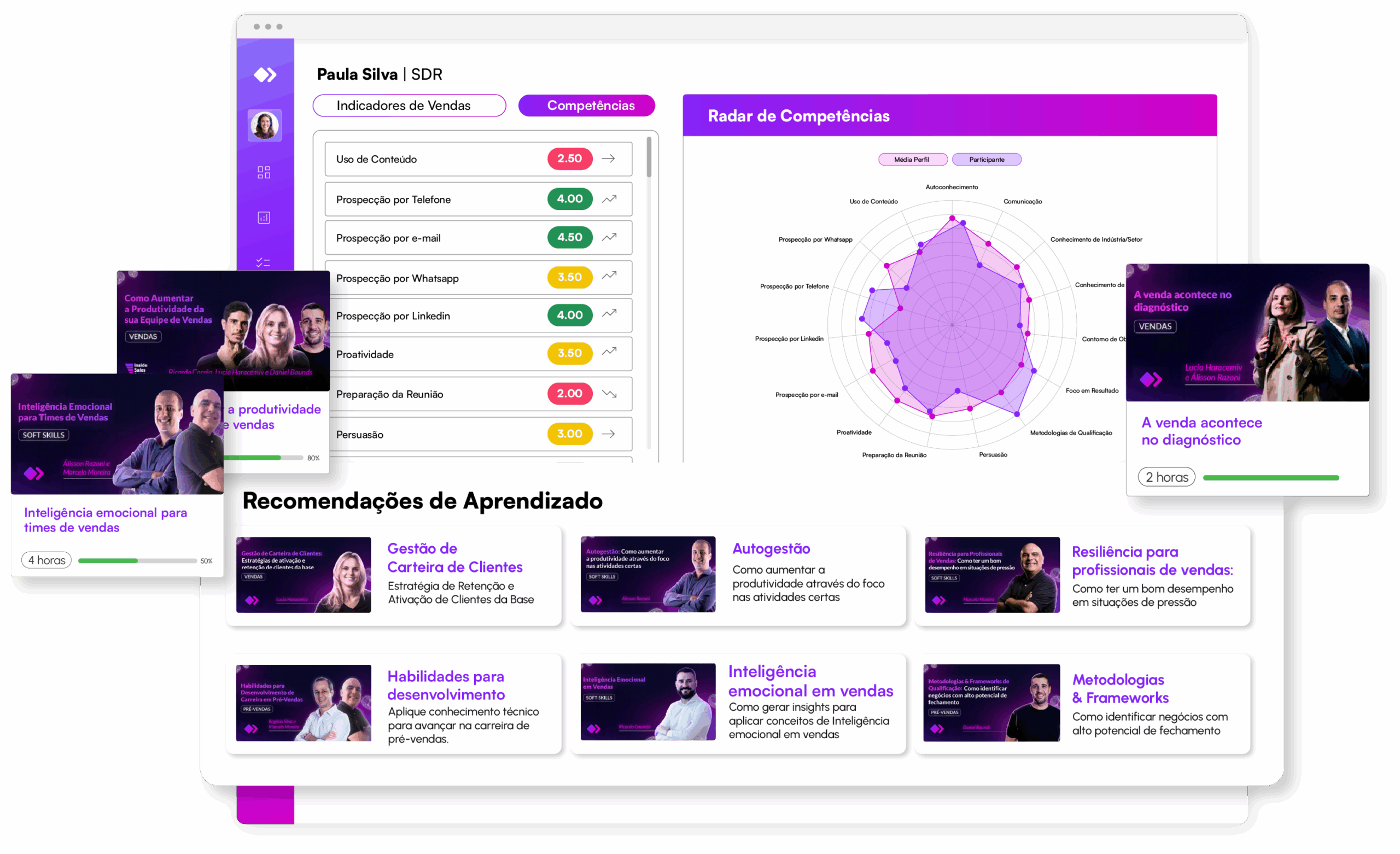 É gestão baseada em evidência. É capacitação cirúrgica. É vendas em outro nível. Conquiste a meta todos os meses com crescimento sustentável, apoiados por uma ferramenta de IA que assegura gestão precisa do pipeline e dashboards que orientam decisões assertivas
